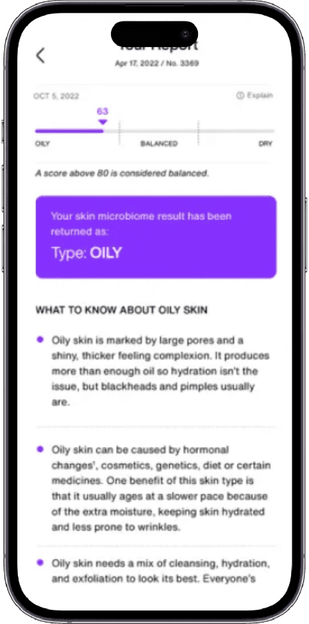 Skin Trust Club is a skin health tracking app that provides personalised skincare suggestions based on your unique skin microbiome type.
